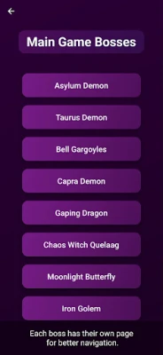 App may contain spoilers for certain games if you do not want to learn which boss you will fight in advance.
