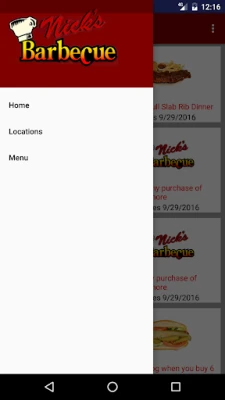 With the official Nick's Barbecue app you can receive exclusive coupons, view our different locations, and view our entire menu right from you phone.