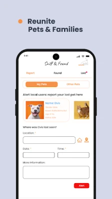 Unite nearby users to help search for your missing pet using location-based alerts. Whether your pet is lost near home or away, Sniff & Found connects you with others instantly to increase the chances of a safe return.